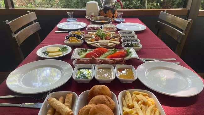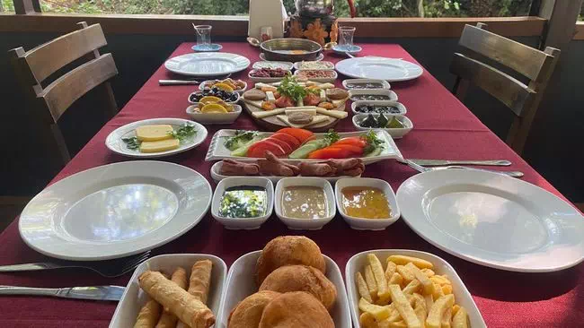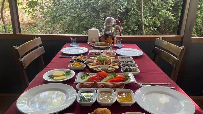 Sabahın ilk ışıklarıyla serpme köy kahvaltımızı, taze demlenmiÅŸ çay ve yöresel ürünlerle doÄŸanın ortasında tatmanın keyfi bir baÅŸkadır. Gün içinde mevsim sebzeleriyle hazırlanan hafif atıştırmalıklar, akÅŸamları ise odun ateÅŸinde piÅŸen et ve balık menülerimizle misafirlerimize lezzet ÅŸöleni yaÅŸatıyoruz.
